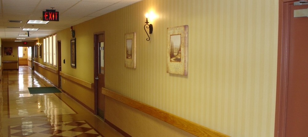 Redesign and buildout of a 200 bed, 60,000 sq ft health care facility. Project included entrance, lobby, hallways, and other areas including patient, shower, family, day, dining, and therapy rooms. Exterior work included custom stone waterfall signage, awning, stone/stucco, new roof, and landscaping.